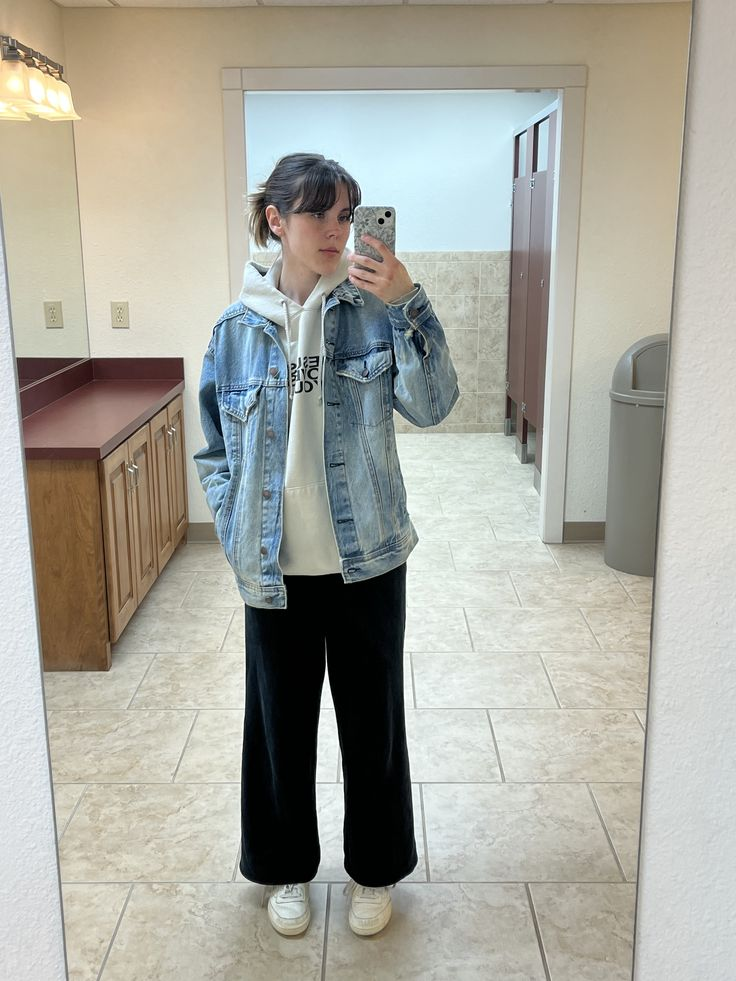 Think “elevated off-duty.” A slim hoodie under a trucker, then tailored trousers and minimalist trainers. The mix feels modern and comfy (I wear this on flights, prolly too often).