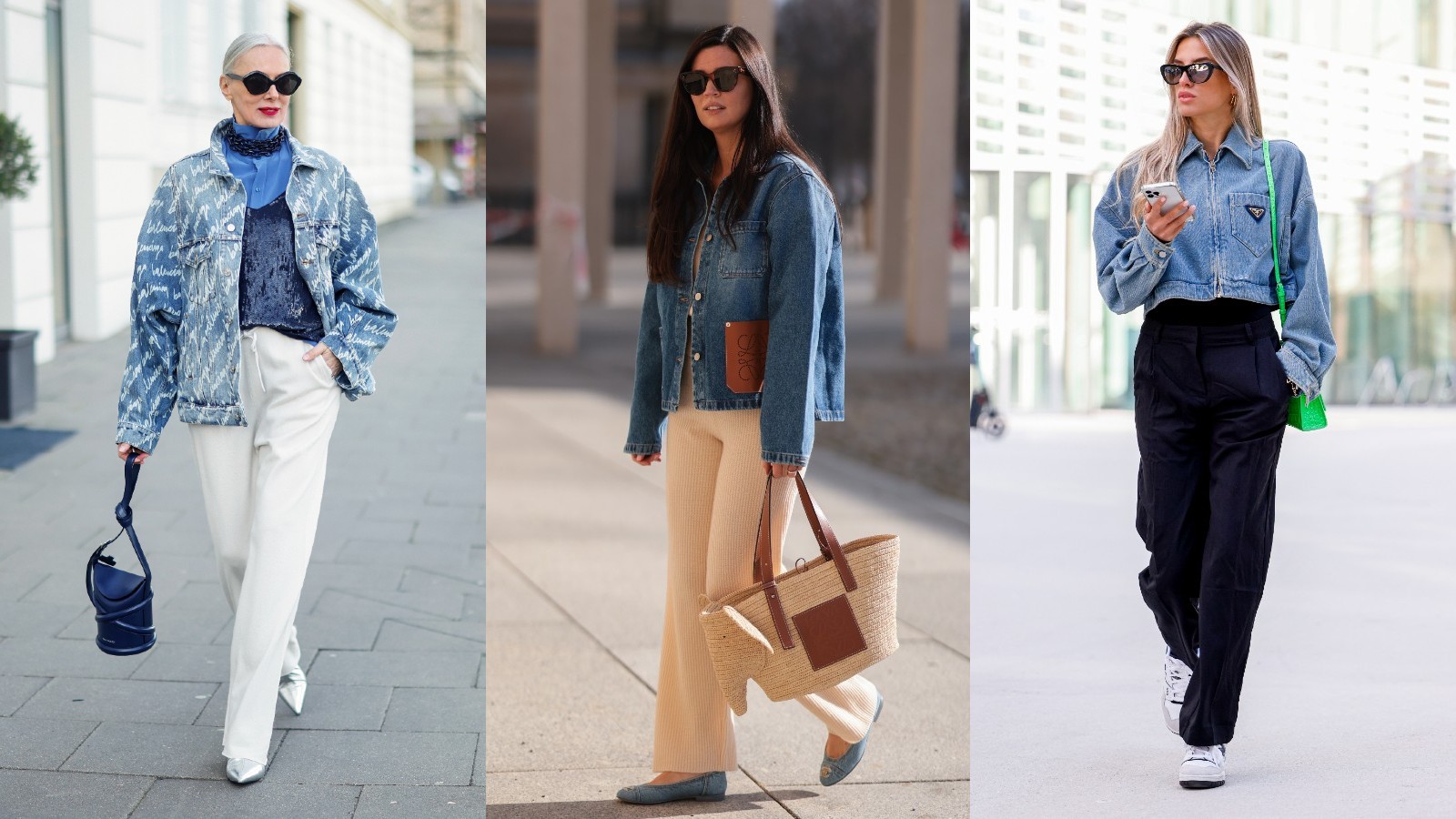 Wear the denim jacket under a longer coat (trench, topcoat) for warmth and balance. Reversing that—cropped denim over a long coat—tends to look chaotic. Stick to the proven formula for a clean line.