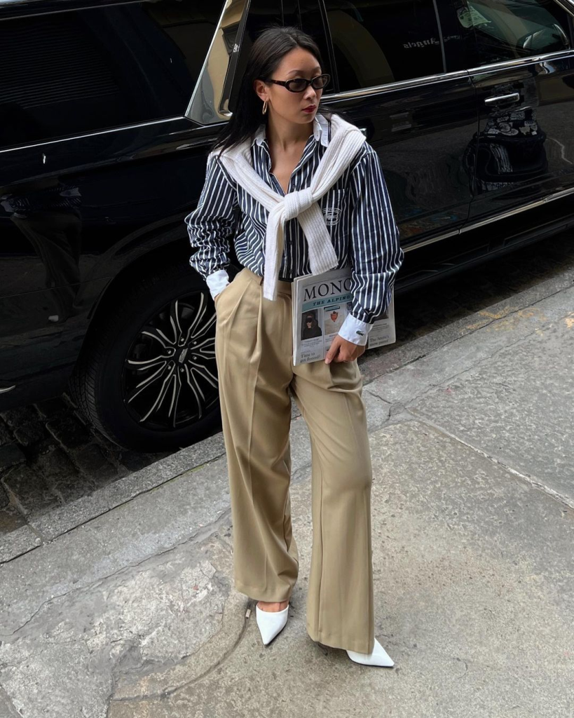 Let trousers earn their keep beyond the office : pair it with a white tee and sneakers; throw a blazer over a hoodie; ground a pencil skirt with a fisherman knit. Celeb street style (hello, Katie Holmes) is a masterclass in “business meets casual.”