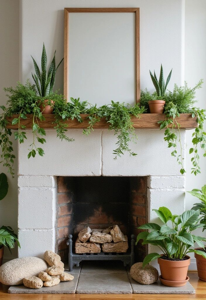 Have a sealed or purely decorative hearth? Treat it like a planter niche. A large Boston fern can turn a dead zone into a focal point with color, texture and a bit of humidity. Biophilic design—bringing natural patterns and plants inside—is associated with better mood and perceived well‑being in multiple reviews and field studies (Terrapin Bright Green; Harvard Healthy Buildings). Just one caveat: confirm the fireplace is fully decommissioned and clear of soot to avoid dust and allergens (EPA), and if you have pets, choose non‑toxic species (Boston ferns are generally considered pet-safe; always double-check the ASPCA plant list).