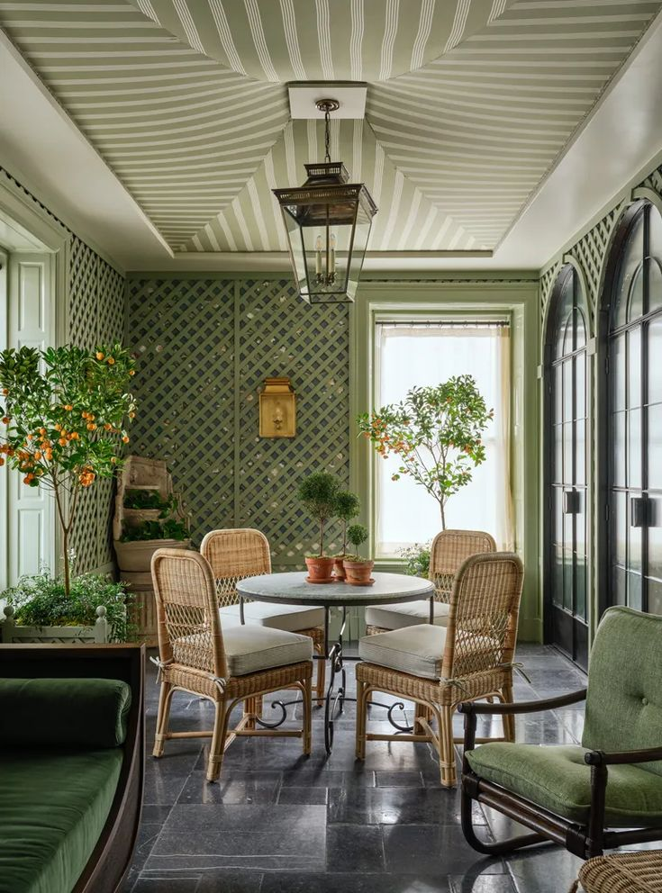 7) Add trellis or lattice detail to the ceiling for a garden-room vibe
