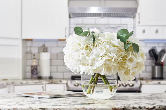 - 10 minutes: Fill a large glass vase with 1–2 bunches of hydrangeas (real or faux). Cut stems at an angle; change water every other day.