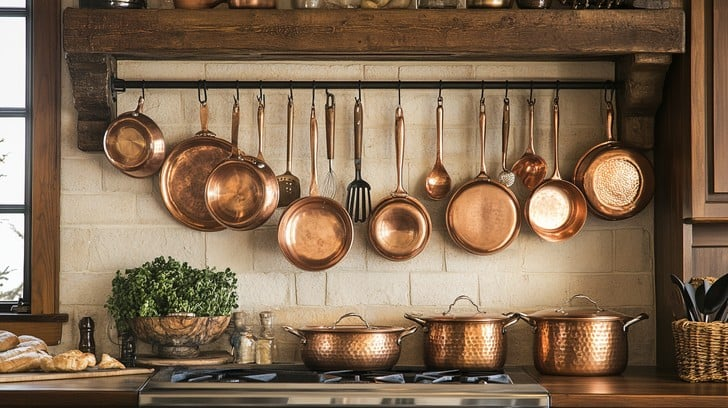 - Copper accents (cookware, canisters, or a tea kettle), displayed—not hidden (FDA copper guidance).